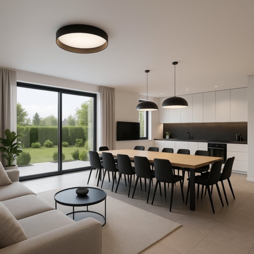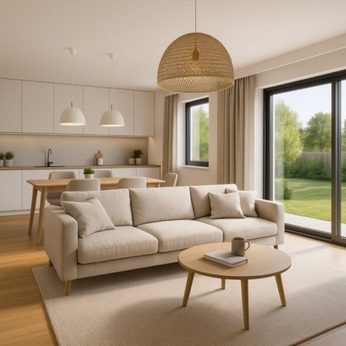 Salon to serce każdego domu – przestrzeń, w której codzienne życie splata się z chwilami relaksu i spotkań z rodziną oraz przyjaciółmi. W naszych inwestycjach przestronny układ pomieszczenia pozwala na swobodne aranżowanie stref wypoczynku i rekreacji, tworząc przyjazną atmosferę. Jasne wnętrza wprowadzają poczucie przestrzeni i komfortu, a nowoczesny design sprawia, że salon staje się eleganckim i funkcjonalnym miejscem w domu. To miejsce, które łączy wygodę z estetyką i zapewnia domownikom wyjątkowe doświadczenia każdego dnia.